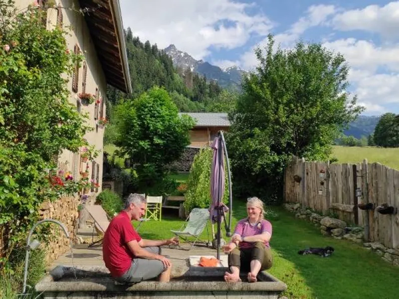 En été de retour de randonnée, on apprécie le jardin autour de la fontaine, pour une séance de cryothérapie, et ses chaises longues pour une détente complète !
