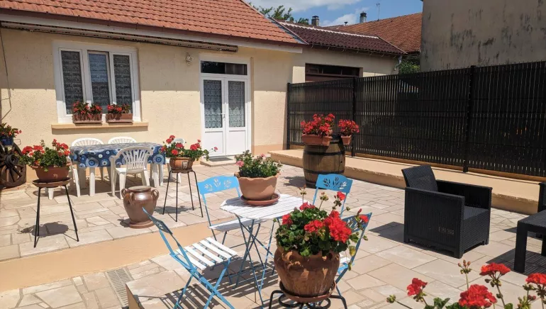 1 suite comprising 2 bedrooms, les vignes and le colombier (2 double beds, 2 bunk beds for children) and a lounge area - 1 mezzanine bedroom, la Cordialine (2 single beds) with kitchenette. Private bathroom and WC - Parking Courtyard - Veranda overlooking garden - Garden furniture.
