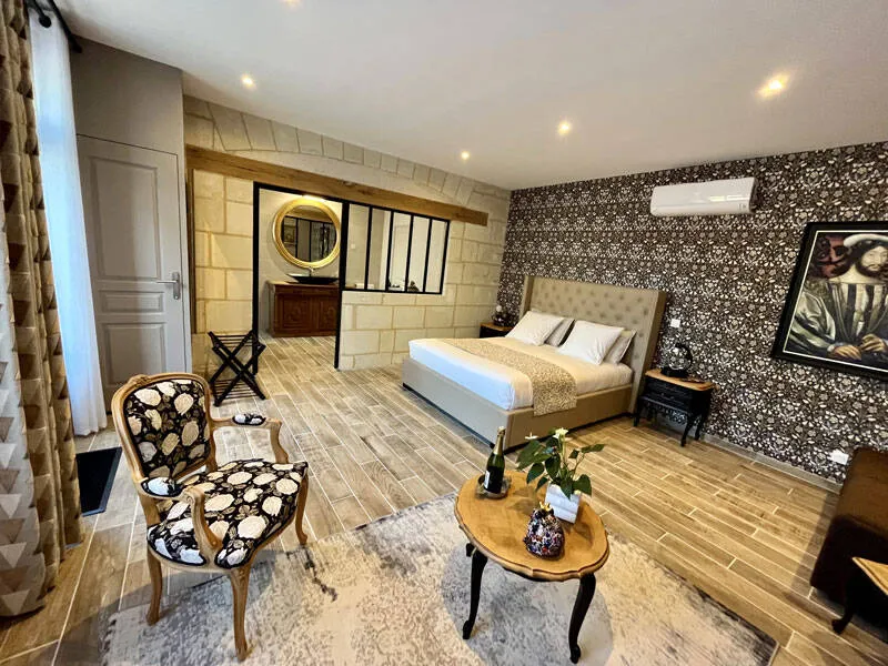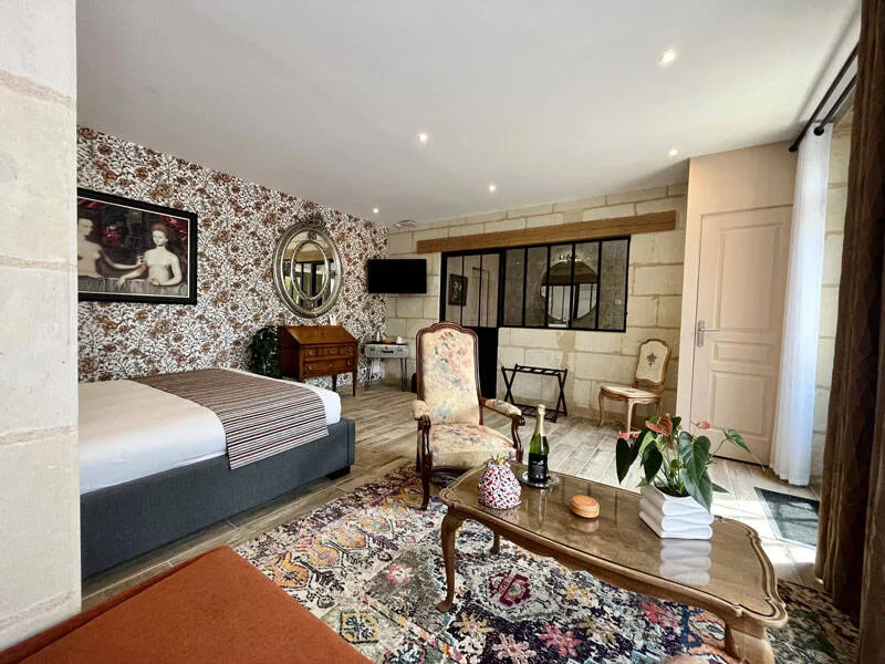 In the heart of the Bourgueil vineyards, our guest house is ideally located on the borders of Touraine and Anjou, lands of natural and historical riches.Made up of ancient tufa stone houses, the property offers 5 guest rooms with a warm, intimate atmosphere, a real invitation to relax after discovering the charm of the Loire Valley and its castles.