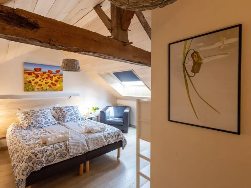 - Les Peupliers, for 3 people (upstairs), with a 160cm bed and an 80cm bed that can be converted into 3 80cm beds.