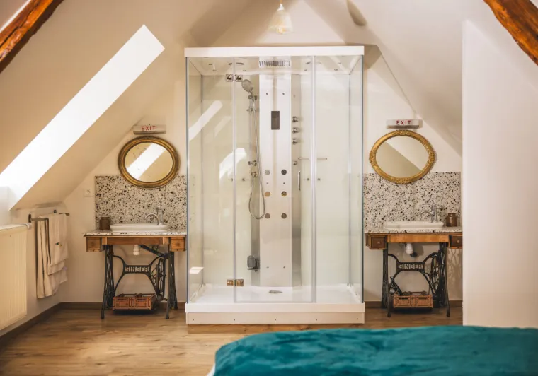 Our rooms, decorated with care, each have their own bathroom, offering an atmosphere conducive to relaxation.