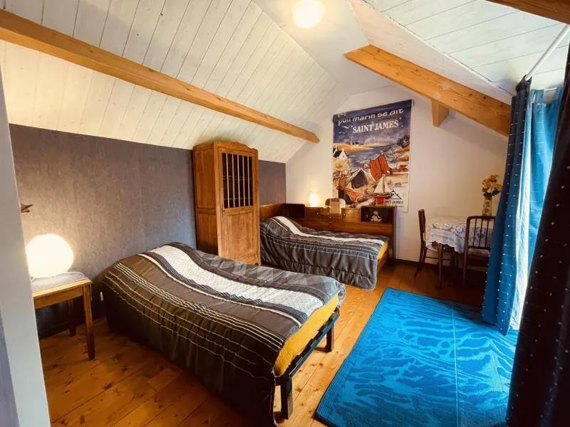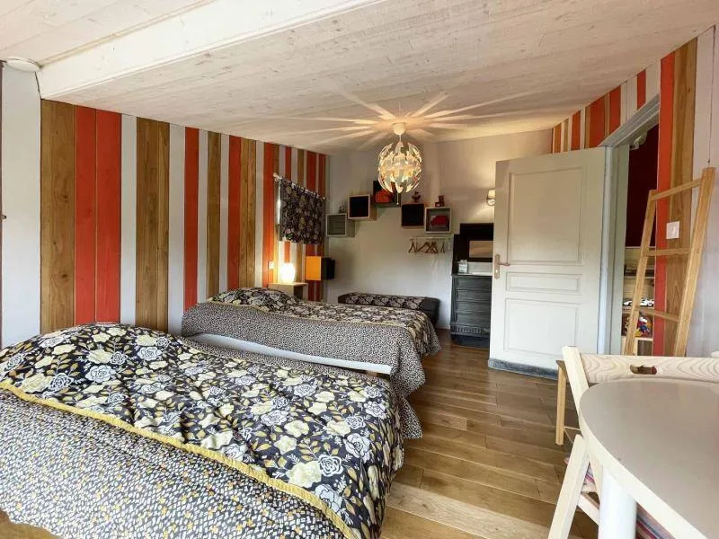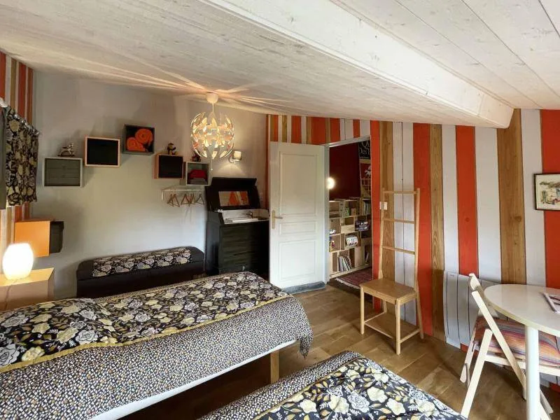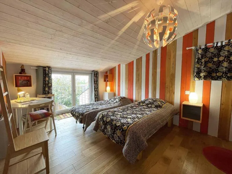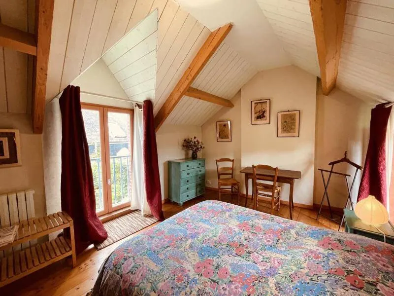 An air of countryside in the heart of the old town! Jocelyne and Jean-Pierre gave free court their inspiration to build and decorate with taste this House and will share their passion for old cars and their knowledge of the country of Alençon.Close to the city centre facing the Park's walks, 1 as family suite with independent entrance, ground floor private residence (stove), kitchen, bathroom with wc. On the first floor: 1 bedroom (1 bed 2 persons + corner washbasin) and 1 bedroom (1 double bed 1 person, 1 bed 80 cm folding + corner washbasin). Electric heating. Garden surrounded by walls, private terrace. Possibility garage. If the 2 rooms are used by 2 persons: €97. CITY TAX INCLUDED. Child charge from 1 year.