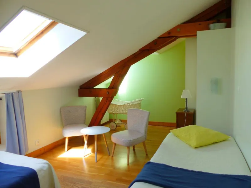 2 rooms have been fitted out in former horse boxes, Italian shower room adapted to disabled people and independent toilet, small living room with private wood stove. On the first floor of their house, 1 family guest room, bathroom (shower/private toilet). Common living room, library, courtyard with lawn, garden, marked hiking trails from the farm. GR3 1 km. Table d'hôtes on reservation (19 €) 10% discount from 3 nights. Bourbon-Lancy 14 km. Access to the owner's swimming pool according to schedule. Rural gite on the spot. Animal park le Pal 12 km. Indoor swimming pool at 3 km. Green way in the vicinityLocalisation