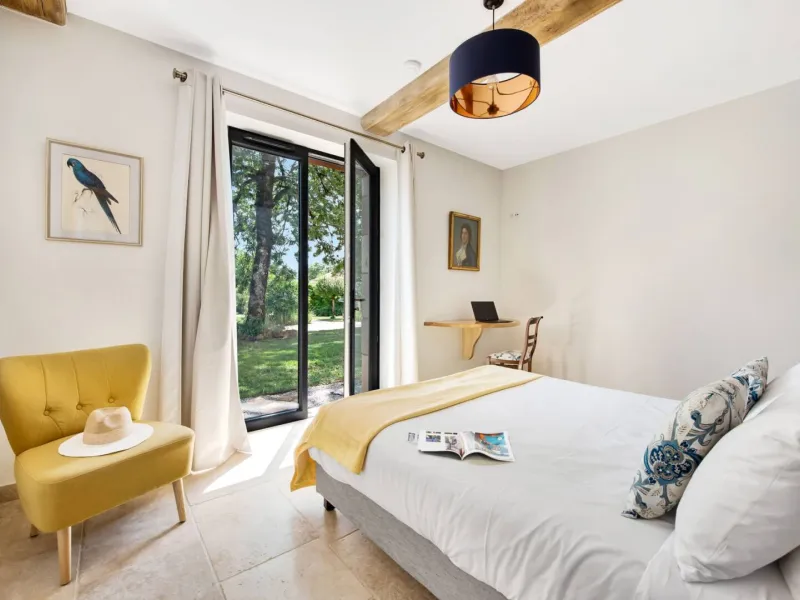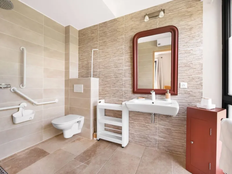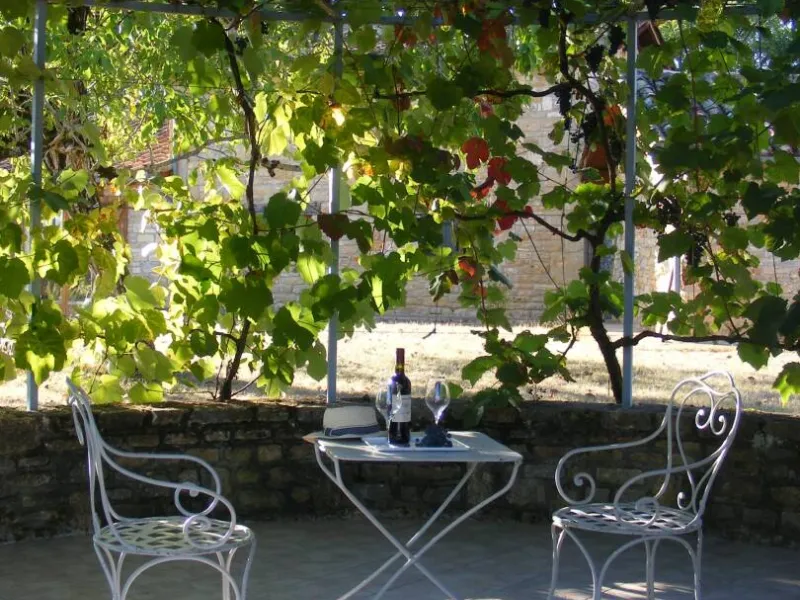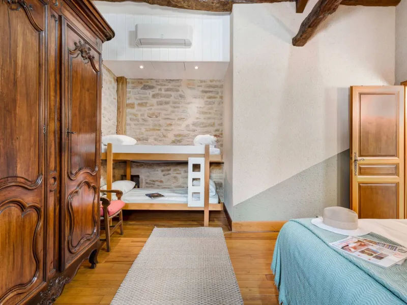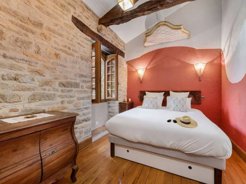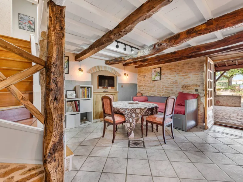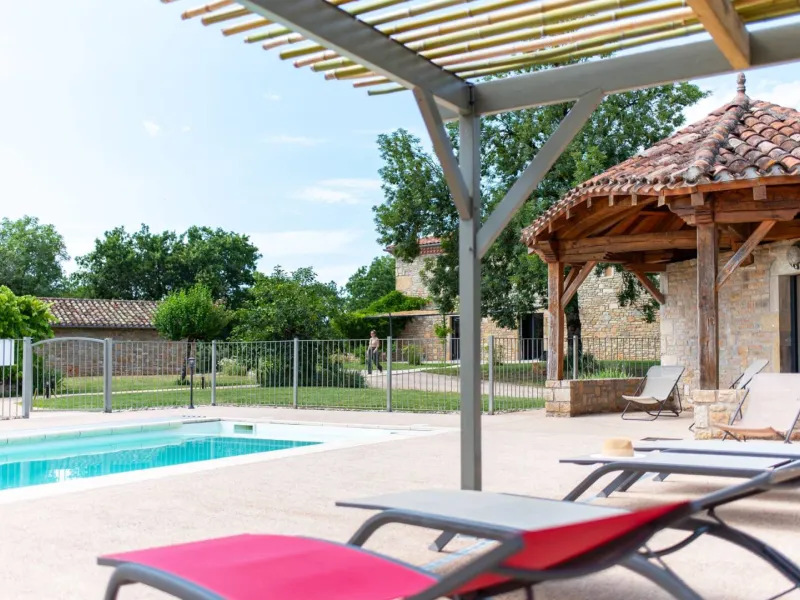 Beautiful, fully renovated stone house with, on the ground floor, an entrance hall giving access to a living room with sitting area (2 3-seater sofas on either side of a wood-burning stove, 4 armchairs, coffee table, TV, DVD player, Satellite TV), kitchen area (fitted units LV, MO, fridge, 1 additional fridge, 1 freezer), dining area. 1 ground-floor toilet with hand-washer and heated towel rail. 2 bedrooms accessible to people with reduced mobility (1 double bed each with en-suite shower room and toilet). Storage space under the stairs. Large terrace in front of the property with shade arbour. Enclosed swimming pool (secure gate) 10 x 4 with steps and paddling pool area. Pretty lawned grounds surrounding the gîte. Parking spaces in front of the building and electric charging point.Wifi in bedrooms and USB and RJ45 sockets in all rooms (ideal for teleworking).
