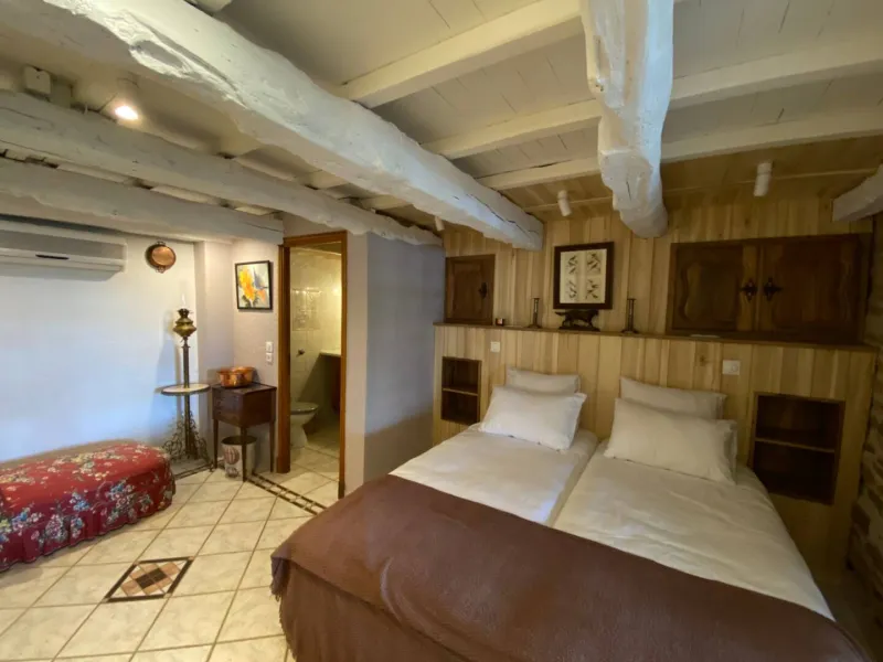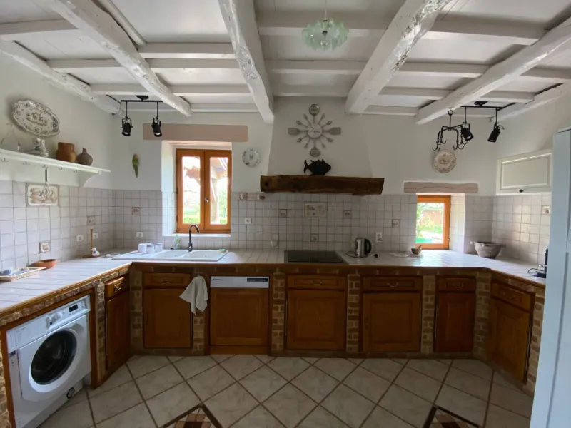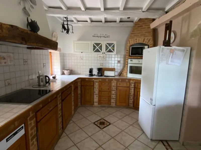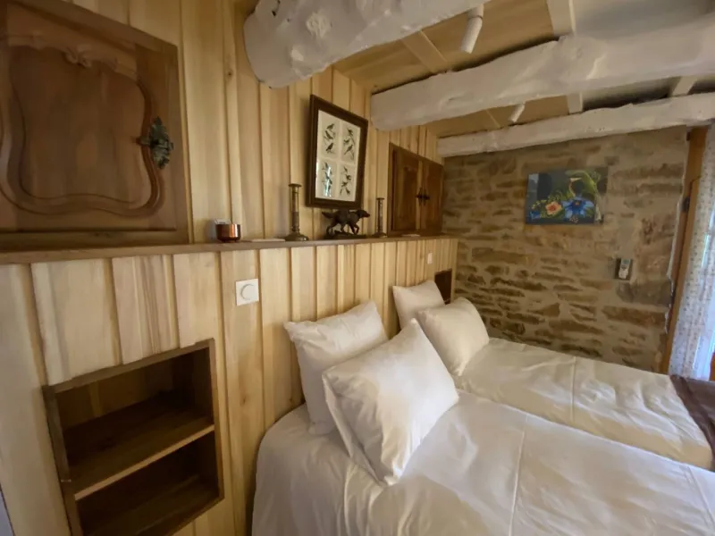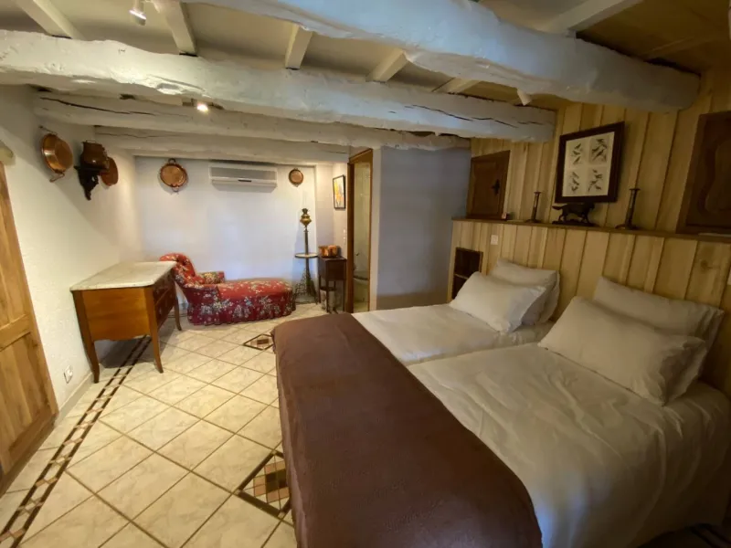 In the old sheepfold, additional capacity with: a kitchen (MO, LV fridge, freezer, washing machine), a dining room. Direct access from the terrace to a ground-floor bedroom (Colibri) with 2 single beds (0.80cm), 1 shower room with toilet. Upstairs, 1 bedroom (1 double bed), 1 bedroom (2 single beds 0.90cm, 2 bunk beds), 1 shared shower room with toilet. Large terrace with pizza oven and barbecue, table and chairs.