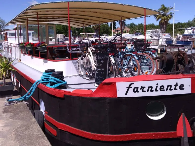 Labelled "Accueil Vélo", the Péniche Farniente is a top stop for cycling travelers. Bicycles are securely stored in a locked facility directly across from the barge. For a complete stay, optional extras include a table d’hôtes dinner, a sports-style breakfast, and massages.