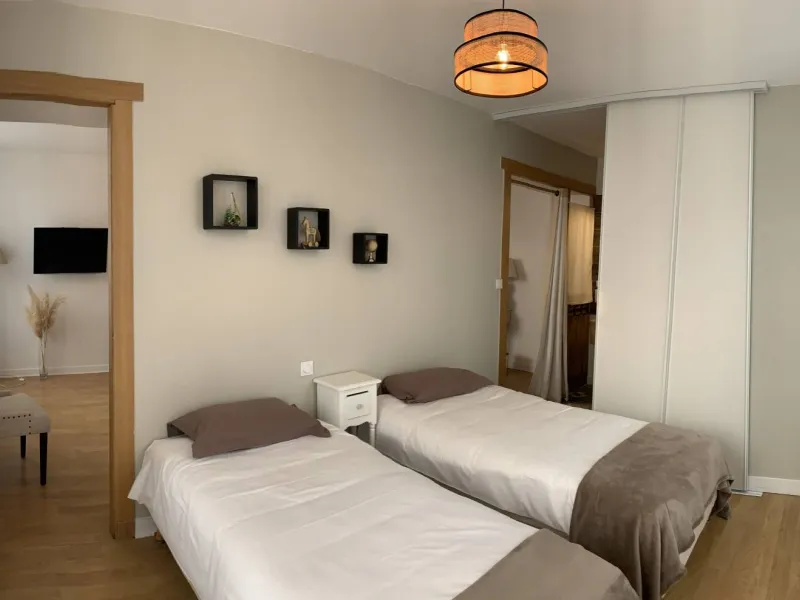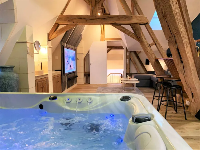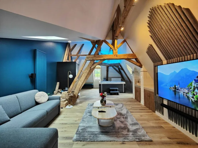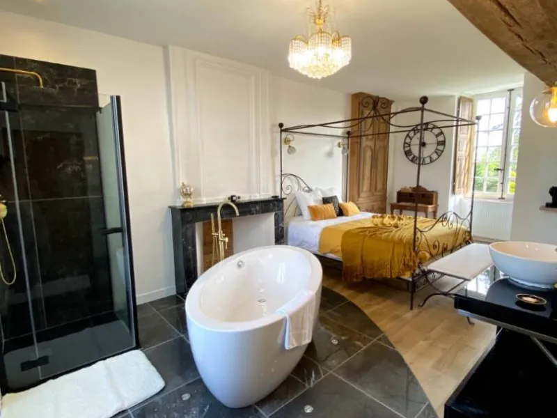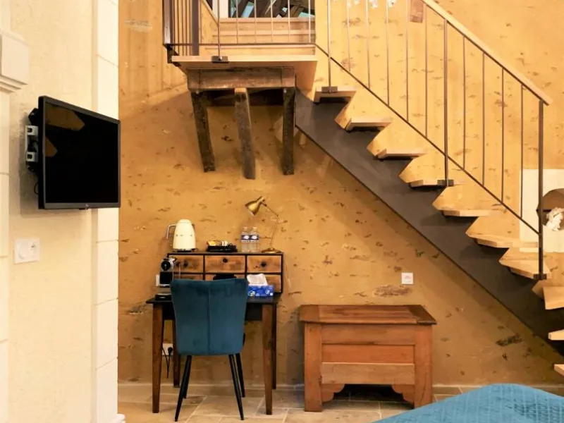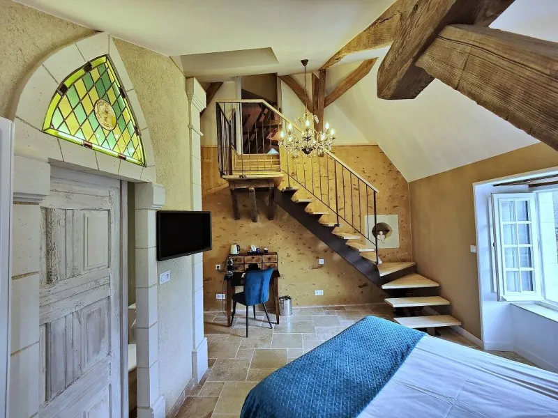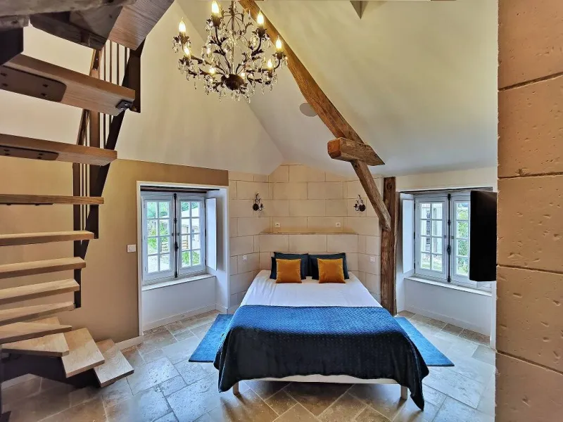 Just 5 minutes south of Château-Gontier-sur-Mayenne, on the main road between Laval and Angers, Bas Chitray welcomes you to its verdant setting of a large orchard and 5 hectares of oak trees. After a long, shady drive, you'll come to a majestic lime tree, giving way to an orangery and a building dating back to the 14th century. Le Bas Chitray has 5 guest rooms, including a 65m² mezzanine suite with jacuzzi and private home cinema, located in a former chapel. In addition, we offer 2 fully-equipped gîtes, each sleeping 4 and 8 people. For your business meetings or training sessions, take advantage of the 60m² fully-equipped and connected meeting room. Stop off at this place steeped in history to start your tour of the Mayenne and Anjou regions, to make a stopover on your holiday route or for your business trip. Enjoy a relaxing stay in the chic countryside!