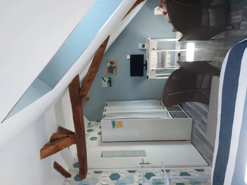-The GABARE room with a 140x200 bed, a TV and a relaxation area. Possibility of adding an extra bed (20 euros) or a cot (5 euros).