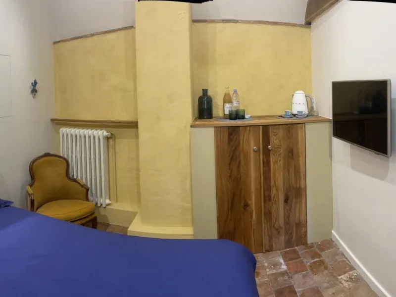 - The room overlooking the paved courtyard (ideal for 1 or 2 people) :