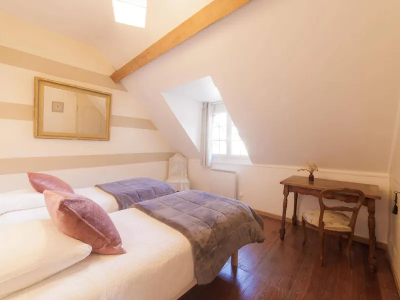 We are pleased to be able to welcome you to our charming 19th century estate.This family property, made up of an old Orangery and outbuildings of Beaulieu Castle, is located in a green setting with its 4-hectare flowered park, its relaxation areas with a view of the Seine, its romantic pool and its listed wood. Our accommodation consists of the Clémentine Suite (2 independent bedrooms) with bathroom and WC, as well as a large relaxation lounge and TV (40m2). Bedroom 1 Clémentine has a double bed (160cm) and Bedroom 2 Mandarine has 2 single beds (90cm), which can be pushed together.