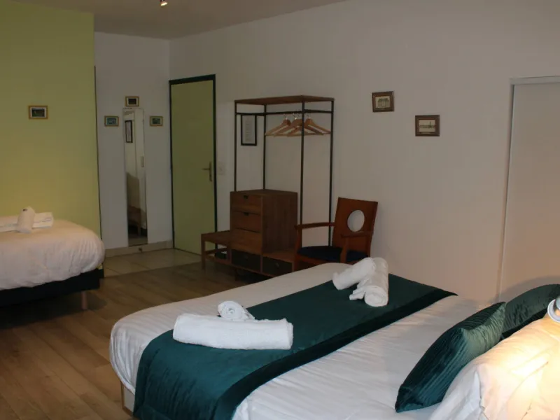The guest room "Le Bocage" is located on the first floor. It is suitable for 4 people maximum (1 bed 140 and 2 beds 90). A shower room with WC is adjacent. There is no TV. Pets are not accepted.