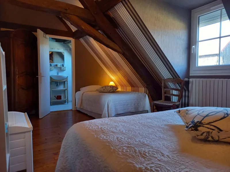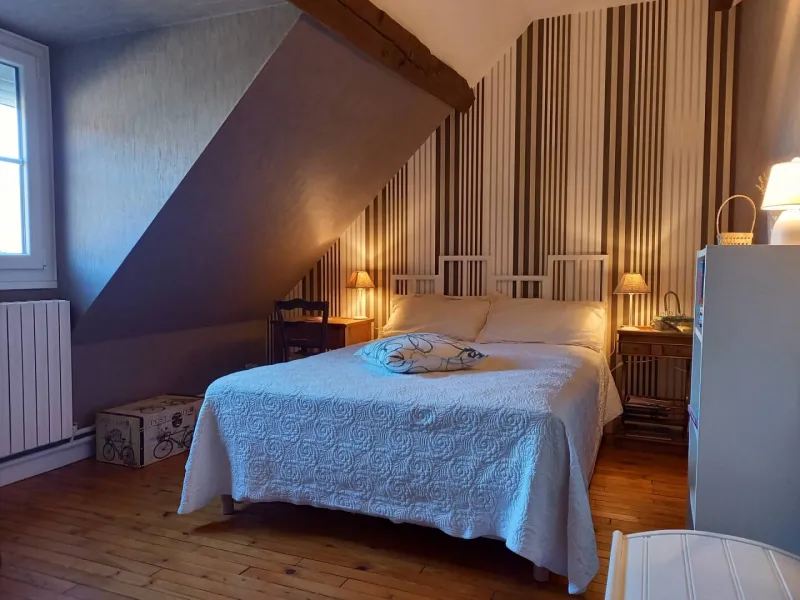 Located on a cereal farm in a very peaceful setting, 2 spacious, comfortable rooms. 500 m from the EV6, 3 km from Decize, 4 km from the Canal du Nivernais, 30 km from Nevers, Moulins, Magny-Cours and the Morvan. Ideal stopover for cyclists.Ground floor