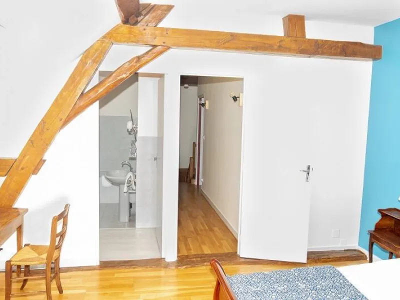 The 3 bedrooms are located in the old hayloft of the farm.The largest room has a double bed and a single bed.