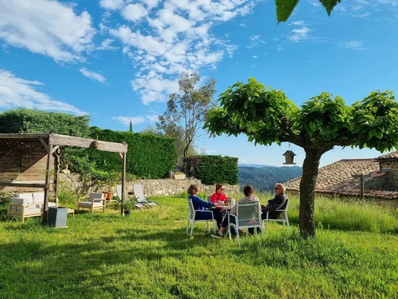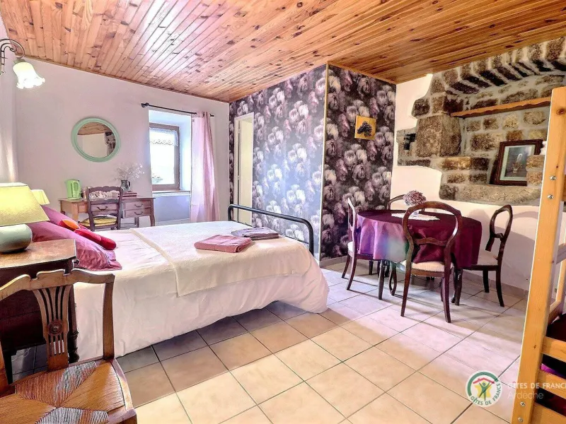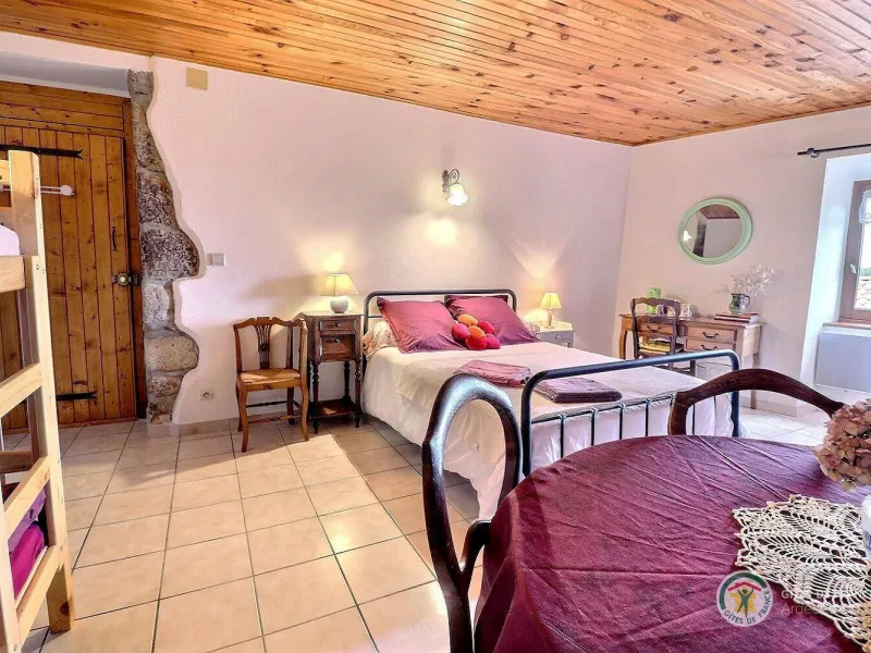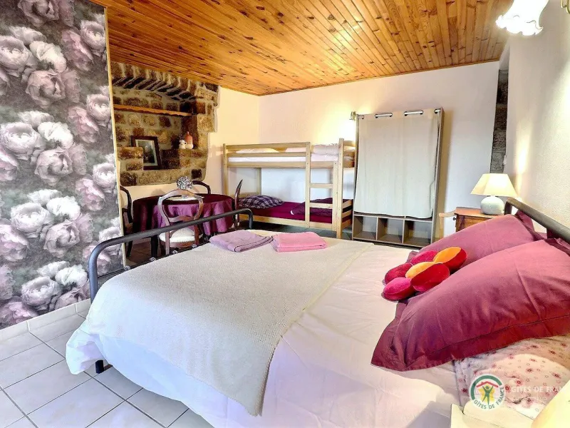Cette grande maison en pierre, typique de la région, a été entièrement rénovée. Elle comprend sur la partie gauche l'habitation des propriétaires, en contre-bas la chambre d'hôte et sur la partie droite 2 petits gîtes.