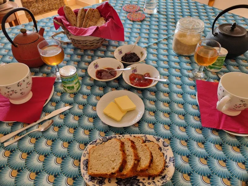 Les petits déjeuners sont servis chez Sophie, la propriétaire, ou en chambre ou dans le jardin aux beaux jours.