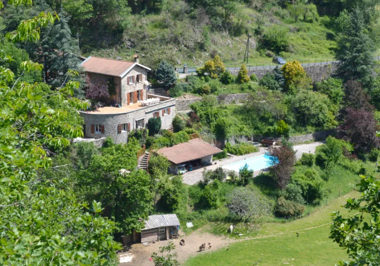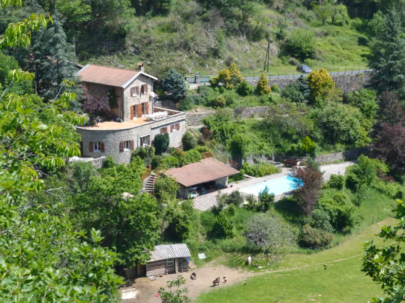 Dans un grand parc, au calme, avec la rivière et sa piscine, nous vous proposons 4 chambres avec ses salles de bains et WC individuels.Chaque chambre à un style différent et une entrée indépendante, pour 3 d’entre elles, il y a terrasse ou jardinet individuel. La Bergerie est située directement sur la voie verte la "Dolce Via". Nous servons les petits déjeuners dans la véranda et le soir 1 ou 2 fois dans la semaine nous proposons la table d’hôte et également sur réservation la planche Ardéchoise pour 2 personnes.