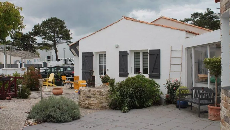 Gîte set in a house located in a residential area on a 1100 m² property comprising the owner's accommodation, 2 other gîtes and a chambres d'hôtes. Ground floor: living room/kitchen (mini-oven), small bedroom (1 double bed), shower room/wc. Garden furniture, electric grill. Shared swimming pool (5x11m) open from Easter to September. Parking in the street in front of the property.