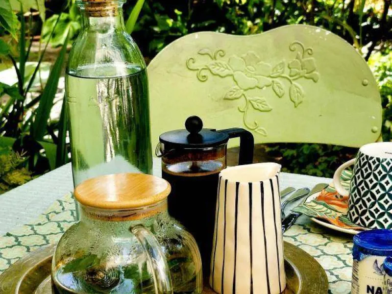 Breakfast is served in your living room, or in the garden if the weather permits.