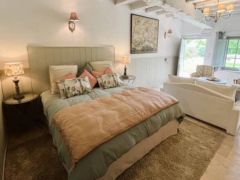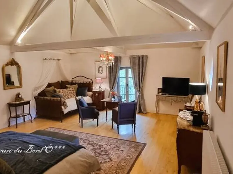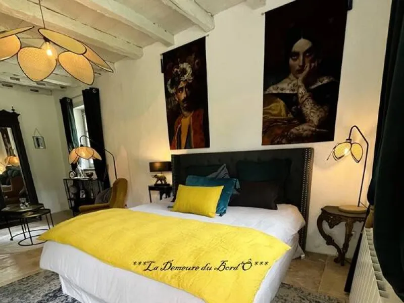 In the heart of the South-West, La Demeure du Bord'Ô is just 1 hour from Bordeaux and Bergerac airports. Close to Marmande and Casteljaloux, we offer three large guest rooms nestled in gardens overlooking the Garonne Canal. The tranquility and charm of the surrounding gardens will accompany you. Take advantage of the splendid swimming pool and covered terrace overlooking the gardens, or set off to discover our region, which offers a wealth of activities, including walks along the canal in the shade of plane trees, visits to châteaux and bastides, and nearby golf courses. The rooms, each over 35 m2, are equipped with wifi and connected TV, a 180 cm king-size bed and a private lounge. Spacious bathrooms with separate toilets and walk-in showers.Localisation