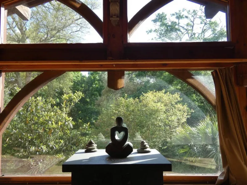 The other 2 bedrooms are upstairs. The first (bedroom B) has a double bed, a single bed and a crib. It's a suite of 2 interconnecting bedrooms. The second (room C), with private bathroom and study, has a double bed and 2 single beds. It features a large bay window running the full length and height of the room. It boasts a breathtaking view.