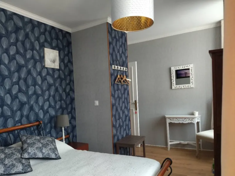 In the center of the village, the house of the Fountain welcomes you in a very cocooning decoration. Christophe will make you appreciate all his cooking talents and will propose you dishes based on local products.Hikers welcome (path of St Michel). Gorges de la Vire and viaduct de la Souleuvre (bungee jumping) nearby. On the spot : table d'hôtes, picnic basket and tea room. Label accueil vélo. In the house, on the 1st floor : 3 bedrooms for 2 persons (double beds 160 cm, private bathroom with WC)