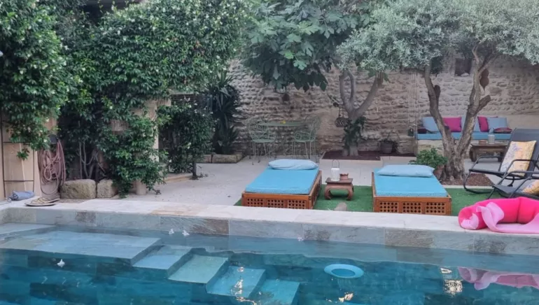 Entre la Petite Camargue et le plateau des Costières, la Maison de la Porte Saint Louis est située au cœur de Vauvert et vous accueille avec ses 3 chambres dans une ancienne maison vigneronne, en centre ville. Chambre "Suite des Costières" pour 2 à 3 personnes : Suite en rez-de-chaussée, de 30,5 m2 composée d'une chambre avec un lit double en 160 cm, d'un salon privé avec un canapé convertible en 130 cm, télévision, salle d'eau avec douche, wc privé attenant à la chambre. Chambre "La Petite Camargue" pour 2 personnes :Chambre à l'étage, de 13 m2, lit en 140 cm, télévision, douche dans la chambre, wc attenant à la chambre, balcon. Possibilité de rajouter un lit d'appoint en 90 cm.Chambre "La Mer" pour 2 personnes :Chambre à l'étage, de 19 m2, lit en 140 cm, télévision, douche dans la chambre, wc attenant à la chambre. Possibilité de rajouter un lit d'appoint en 90 cm.Table d'hôtes sur réservation : - Apéritif maison, tapenade, salade composée, gardiane, assortiment trois desserts : fruit, glace et moelleux au chocolat, vin compris.- Formule pique-nique.Informations supplémentaires : Cour intérieure avec terrasse, piscine sécurisée, lit bébé et vélos à disposition, garage uniquement pour la suite "Des Costières". Décoration raffinée, cadre très agréable, proche commerces. Petit déjeuner compris. Taxe de séjour en sus.Tarif spécial pèlerin comprenant : collation du soir, nuitée et petit déjeuner. Une nuit offerte pour une location à la semaine.