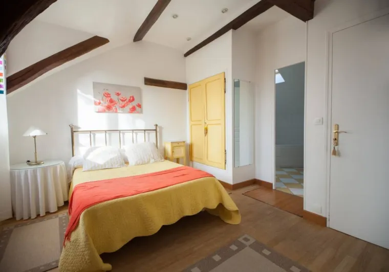 Évadez-vous au cœur du parc naturel régional du Vexin français dans nos chambres de charme de 20 m² ou 28m2, nichée dans une dépendance d'une ferme vieille de 300 ans. Accessibles par un jardin arboré, les chambres climatisées avec salle de douche/toilettes privative offrent un havre de paix idéal pour les amoureux de la nature, les randonneurs, les cyclistes et les pêcheurs.Situées près d'un lac, elles sont parfaitement situées pour explorer les jardins de Monet, le site de La Roche-Guyon, la ville de Vétheuil, ou encore le château de Versailles, le musée de l'Hôtel Dieu à Mantes-la-Jolie ou la Collégiale Notre-Dame de Mantes. Profitez de nuits paisibles et admirez la faune ornithologique locale ou promenez-vous autour des deux lacs, dont l'un abrite le port de l'Ilon. Port de plaisance aux multiples facettes.