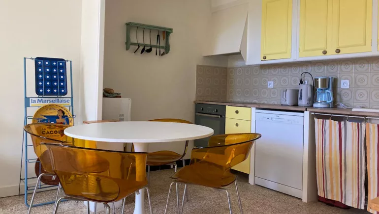 Vous disposez d’un séjour/cuisine en Rez-de-jardin et de 2 chambres au 1er étage. Une chambre de 13m² avec vue sur le jardin et une chambre de 8,5m² sur rue (ventilateur sur pied dans les chambres).