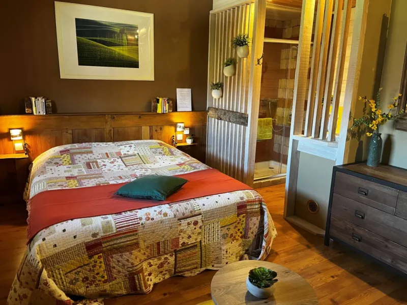 Here it is a village, finally a very small village and even a village just for you. On the edge of the hamlet of Taur, fifteen minutes from the City Episcopal of Albi. Imagine life that revolves around a village plot, its bakery, groceries with its local products, gourmet coffee that welcomes you upon your arrival for a break and especially its charming two hotel rooms soon three. Here everything is done for a moment of life, a moment of sharing. The delicate smells that escape through the kitchen window announce the close time of the meals which will be taken according to the season away from the yard or by the turf fire. In the meantime, you can meet the owner of bike for a ride on our country roads, relax in the indoor pool enjoy the garden and, if time does not, indulge in a moment of reading or play with family around a board game.Overlooking the plot, the hotel Brin de Paille housed in the former sheepfold, offers on the ground floor a lounge with its corner fire and small library. Upstairs, two bedrooms facing the morning sun, married wood and stone to offer a whole respectful of the origins of the building combined with the comfort of today. Each offers a different atmosphere with its separate bathroom and toilet. According to time and envy the breakfast is served on the terrace or in the lounge.