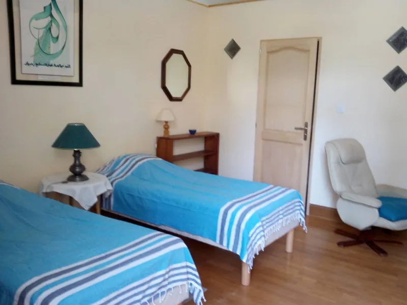Stone-walled house in a large peaceful garden. Spacious single, double or triple rooms with private bathroom. IDEAL for families, groups hiking, cyclo, motorcycle. Organic breakfasts, homemade jams. FORMULA Gite with collective kitchen and TV lounge available. Box-bike closed. Private parking. Relaxation area under the trees, ping-pong and boules. Solar water heater, wood pellet boiler, pesticide free garden.Localisation