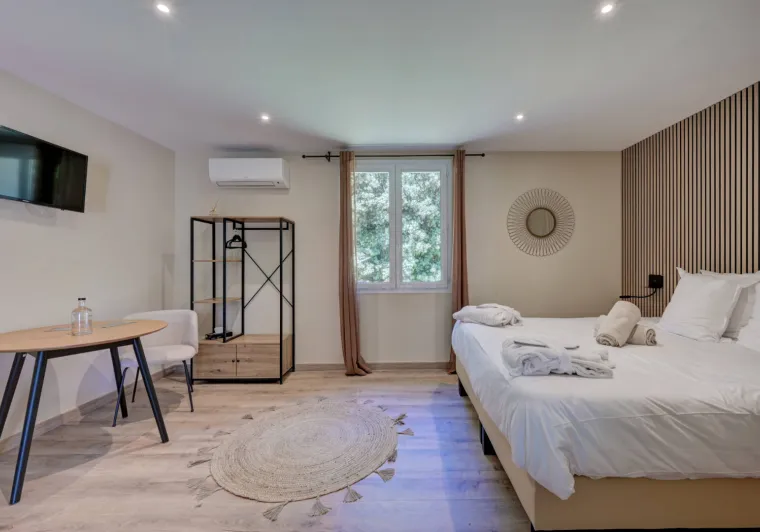 After a day of sightseeing or cycling up the Ventoux you will enjoy the heated pool and friendly table d'hôte. Our old farmhouse, away from the village, with a beautiful view of the castle of Barroux welcomes you in the middle of vineyards and olive grove.Localisation