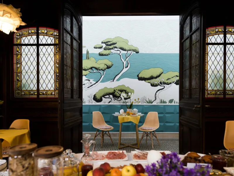 Le Passagran, c’est une maison d’hôtes, classée chambre d'hôtes référence, proposant 5 chambres de qualité et d’excellentes prestations de confort hôtelier premium. Vous serez séduit par la décoration atypique du lieu, avec des chambres inspirées des peintres de l’École de Nice, en l'hommage à cette mouvance artistique. Dans l'esprit du mouvement du Slow Tourisme, notre établissement est idéal pour un séjour romantique ou une visite culturelle de la région. Nous vous proposons de sillonner nos routes de campagne en 2CV avec chauffeur, afin de découvrir nos si jolies petites routes départementales. Venez particulièrement musarder le long de notre toute récente "Route des vins", à partir de notre établissement labellisé "Vignobles et découvertes".Nos amis cyclistes sont également les bienvenus puisque le Passagran est devenu cette année "Accueil vélo": la sécurité de vos vélos sera assurée, vous trouverez un kit de réparation ainsi qu'un petit déjeuner adapté à vos exploits !