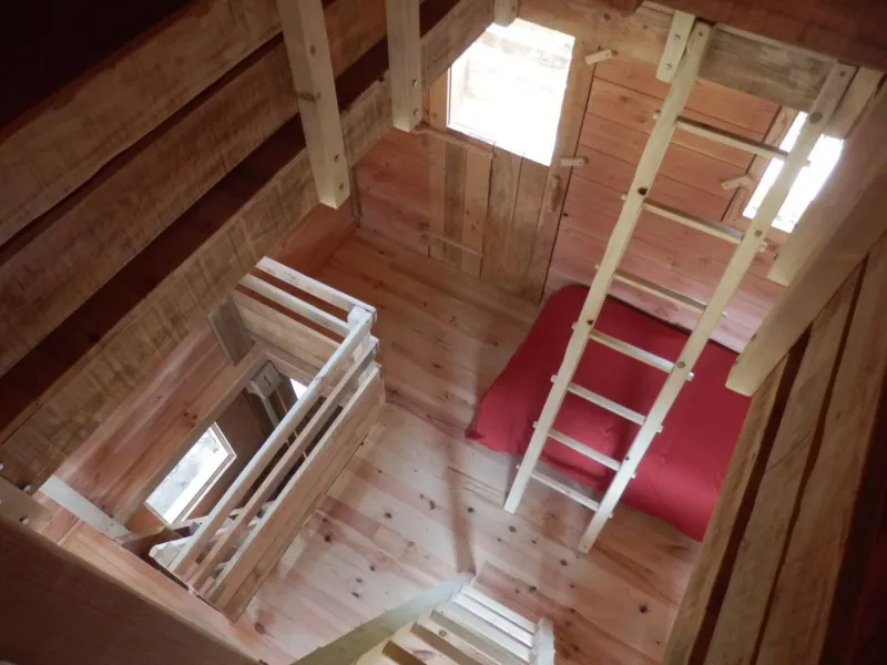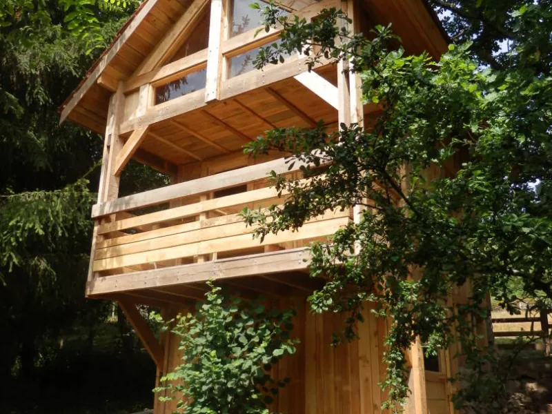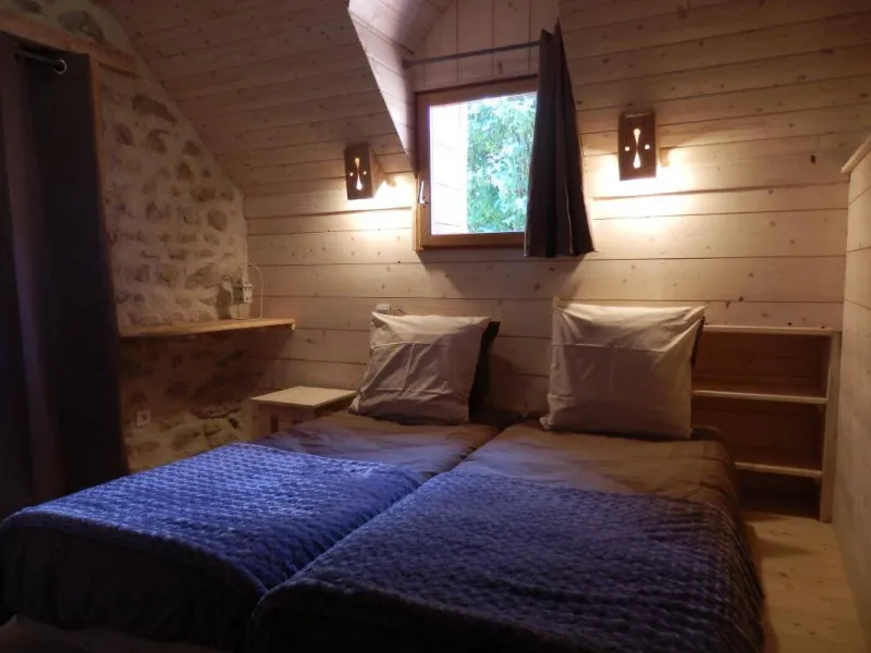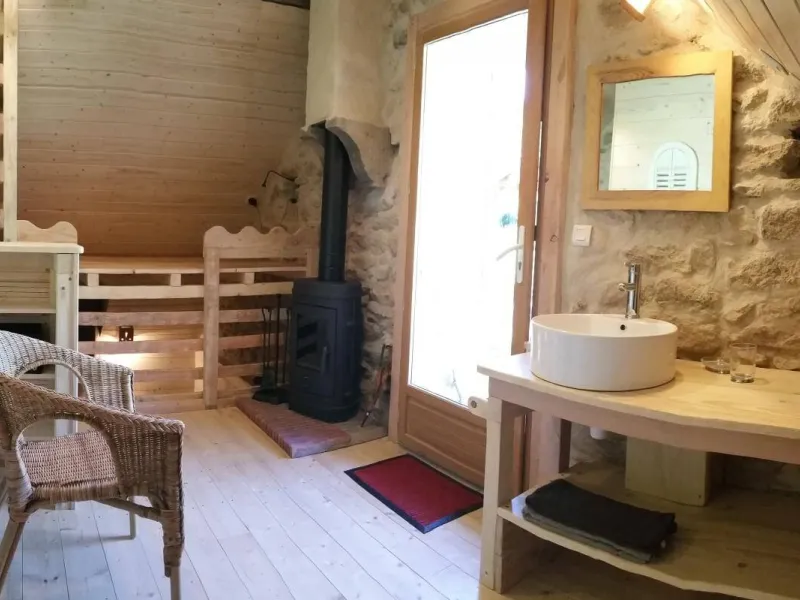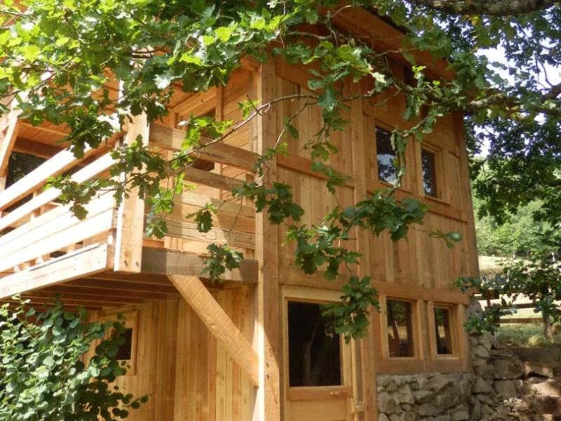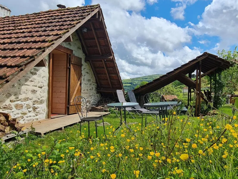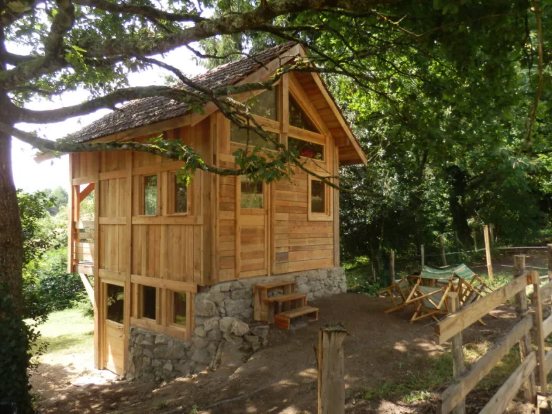 Welcome to the "Cabane - Eco Lodge", a true refuge nestling at the bottom of our garden, surrounded by oak trees and offering a breathtaking view of the Mesrvin valley. Close to our donkeys, this unique accommodation combines the rustic charm of a hut with the warmth of a chalet. This unusual and authentic place invites you to immerse yourself in the heart of nature, for a simple but comfortable experience.
