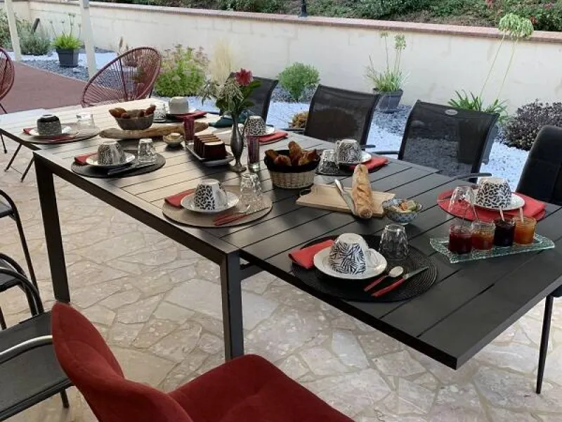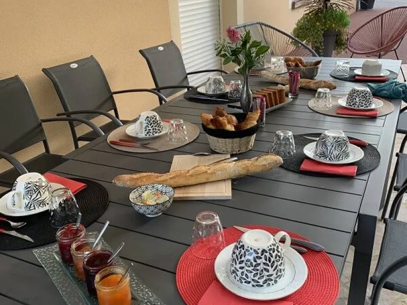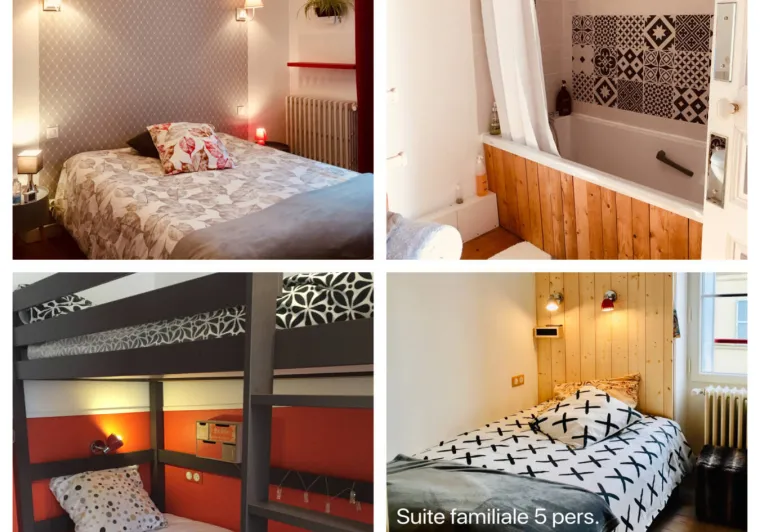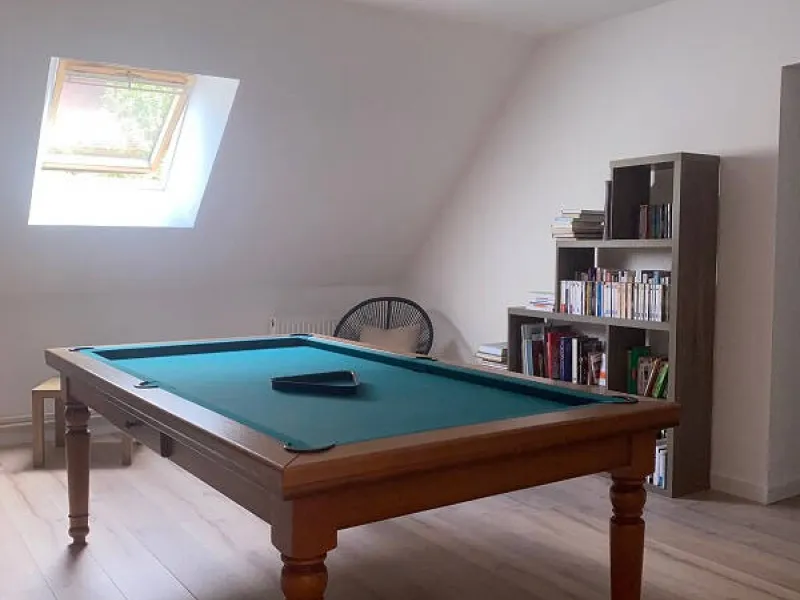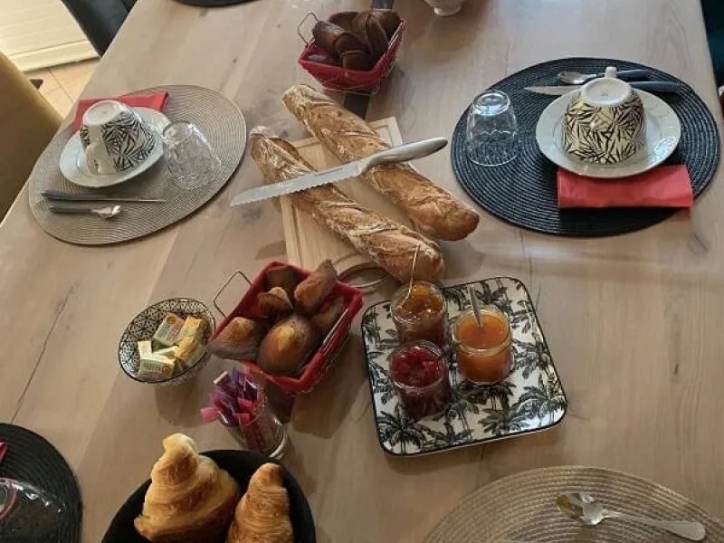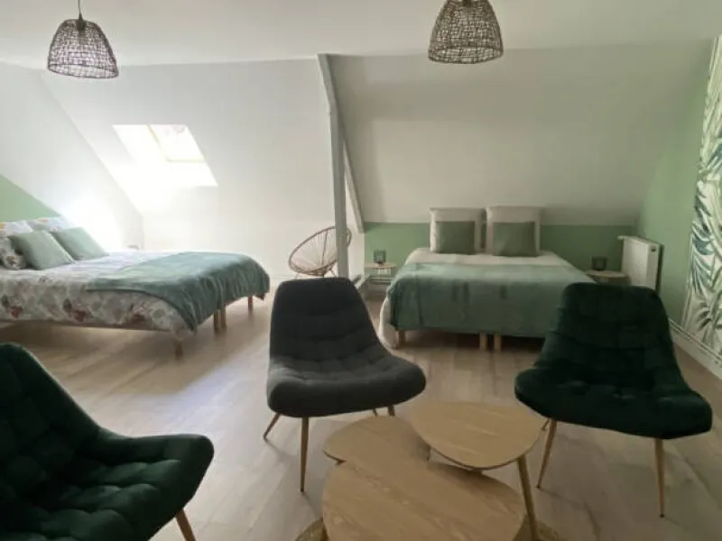 This three-bedroom bungalow is located on the second floor with its own entrance. On sunny days, you can take full advantage of access to the terrace. Free Wi-Fi access is available throughout the house. A room with a billiard table is at your disposal, as well as a library, a relaxation area and a kitchenette (coffee maker, kettle, microwave, refrigerator). Christelle & Gilbert serve a continental breakfast with fresh produce: baguette, viennoiserie, homemade cakes and jams, apple juice and other surprises. Each room has a flat-screen TV, sitting area, private bathroom and WC. The "Terracotta" room has a 140cm bed, a desk and a gantry (folding bed available). The "Dune" room has a 160cm bed, a desk and a gantry (folding bed available). The "Emeraude" room has two 160cm beds.Interested in this establishment? Visit their website to book or find out more.