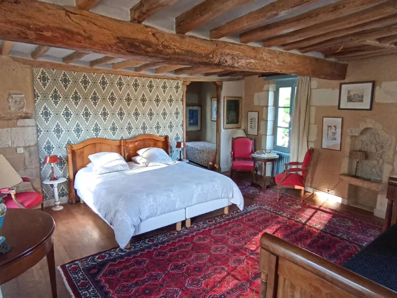 Ideally located in the heart of the Loire Valley, in the center of the village of Onzain (facing Chaumont), the guesthouse of the old castle is a large suite of four pieces (70 m²) with terrace located on the floor of the historic wing of the buildings,-"pose\" on a talute wall of over 500 years and 1.20 m thick. This floor rebuilt in the nineteenth century was rehabilitated in 2010. Park, terrace (220 m²) and moat secure for your walks. Boat, bikes, fishing gear and childcare at disposion. Possibility of reception/transfer station Onzain. Exhibitions, concerts and shows in the season. Free of charge up to 2 years. Discount from 3 nights. The House of the Tower of Helion is installed in the remains of the medieval keep (end 14th). With its curved wall and its cathedral height (6, 50 m),...Localisation