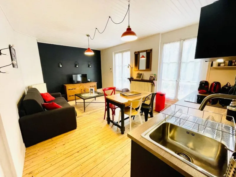 Un esprit atelier, où la fonctionnalité est mise à l'honneur. Cet espace de vie aux allures de loft industriel, combine à merveille les couleurs vives aux matériaux bruts. Il est situé au premier étage, accès par escaliers et accueille jusqu'à 4 hôtes.La Marquise Barbot