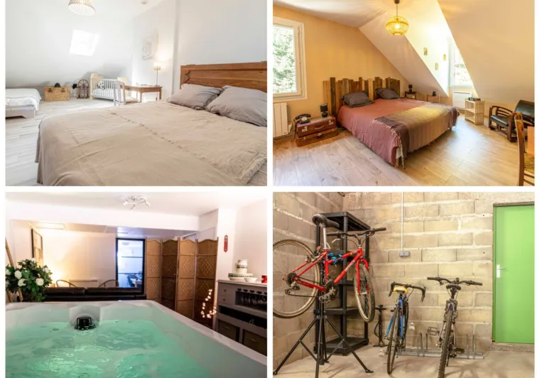 Le Duplex de la Longère: family accommodation with two couples' rooms and a junior dormitory, a bathroom, two washrooms, a living room with kitchen area, a terrace.