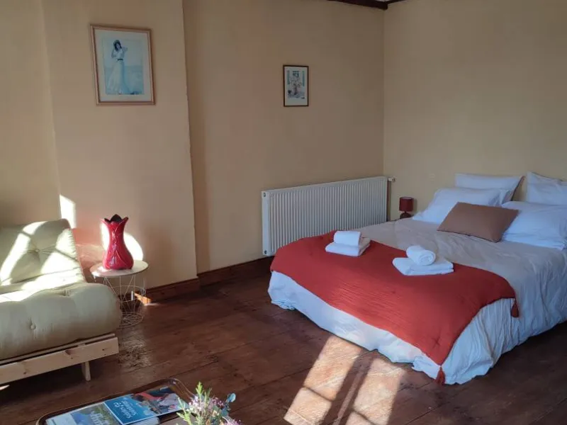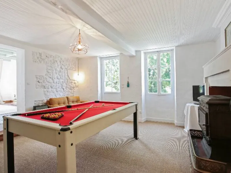 The manor house can also be rented as a gîte. A maximum of 8 adults and 2 children can then enjoy the four spacious bedrooms. These rooms are equipped with top-of-the-range bedding, and bed linen and towels are provided. The various living areas allow you to prepare tasty meals in the fully equipped kitchen, read by the fire, watch television, play board games or pool in the small lounge. There is also a laundry room with a washing machine and tumble dryer. The property also boasts a 3800m2 outdoor space planted with trees and flowers, including a magnificent hundred-year-old lime tree, a large field for playing ball, badminton or pétanque, and various terraces for meals or simply relaxing and chatting.