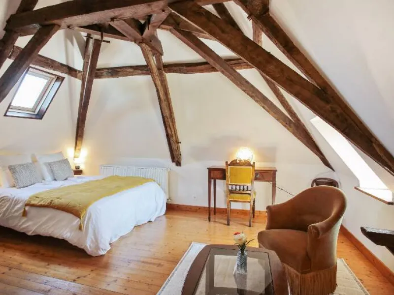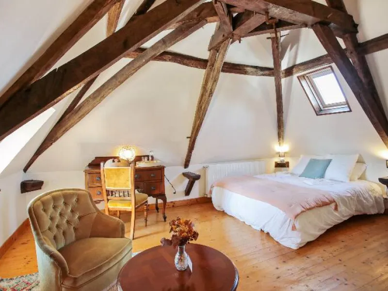 The Tango and Rumba rooms are located on the 2nd floor of the manor house, each measuring 22 m2. These rooms have sloping ceilings, through-rooms, high ceilings and a splendid roof frame, making them very charming.
