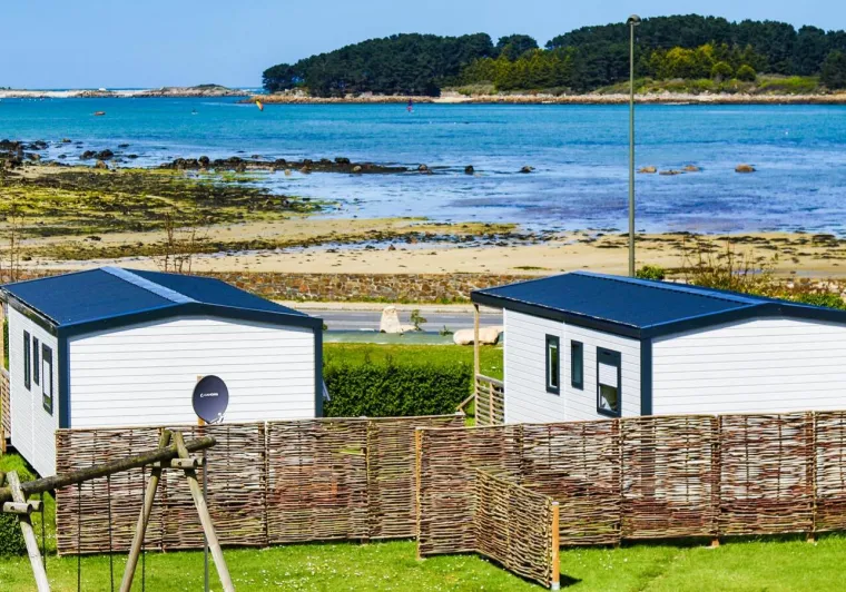 Accommodation in mobile homes, all with sea view. Ideally situated on the GR34.