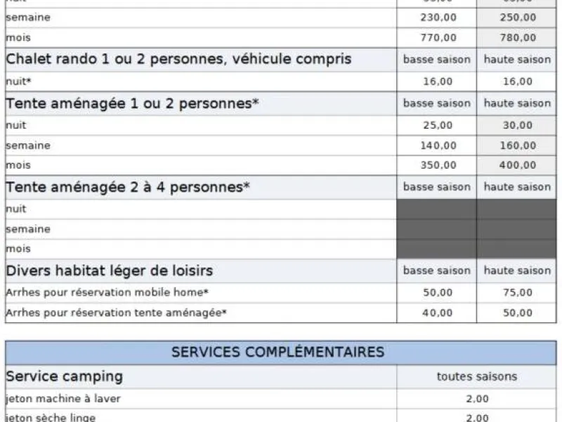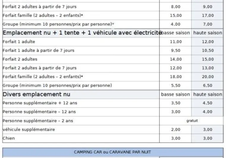 Pitch package 1 person + Vehicle, from 7 days (per night): 5? / 6?