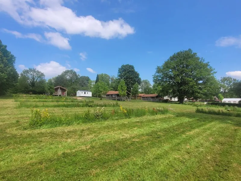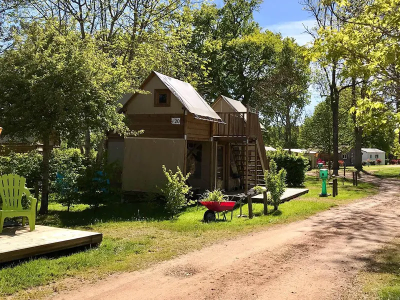 Equipped with 11 chalets, 1 PMR chalet, 12 comfortable mobile homes, 1 unusual cabin, 4 tents for 4 people, 1 bivouac and 18 camping pitches with electric hook-up and motorhome emptying.Snack on site, heated swimming pool from June to September, bowling alley, football field, ping-pong, games for children, mini-golf, theme evening on Tuesdays.Pets allowed (mandatory cleaning fee), horses are welcome.