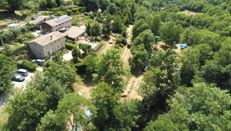 Pitch a tent, park a caravan or mobile home in the shade, on the river bank. Self-catering wooden bungalow. Hiking trails and canyoning nearby. Pets accepted at extra cost. 12km from Vals-les-Bains, 8km from Antraïgues and 20 km from Aubenas.