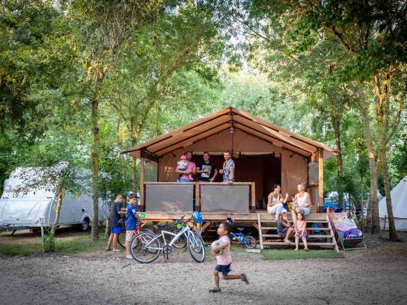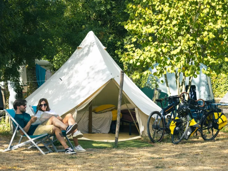 This small riverside campsite offers 27 spacious, green pitches.11 rentals: Coco Sweet (4 pers), Bungalow toilé (1/5 pers), Tentes Tipi (1/3 pers), Tentes Tipi Family (4/6 pers), la p'tite perchée (2 pers), la grande perchée (4 pers).