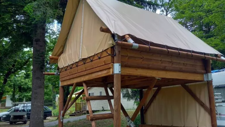 After a day full of sensations and a well-deserved rest, you can take advantage of the snack bar with its fresh pizzas, cocktails, themed evenings and entertainment; and the watering hole for a refreshing dip (a 100 m2 inflatable pool with only 60 cm of water and a slide), a real complement to swimming in the river.