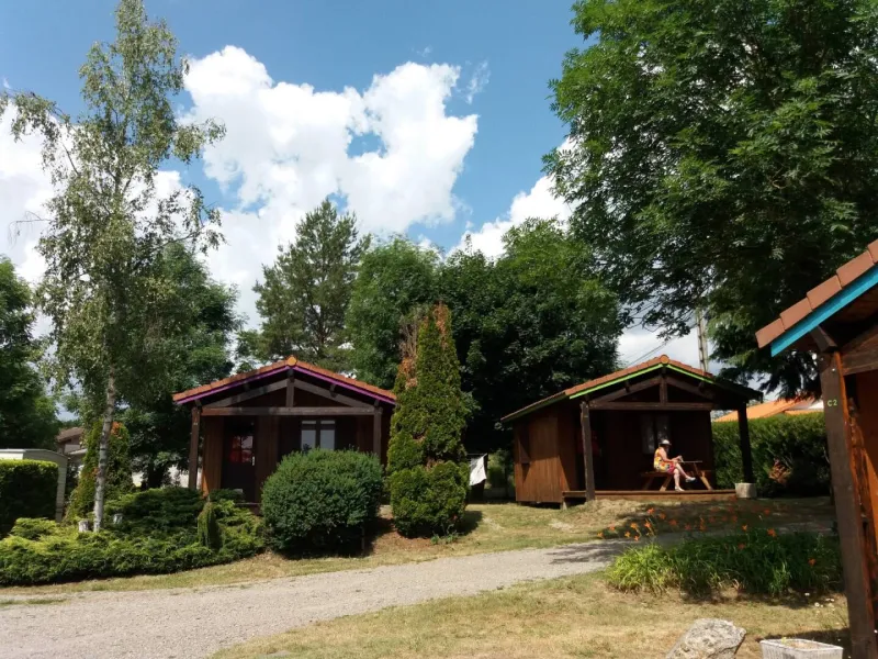 Camping caravanning, shaded pitches, motorhome terminal, disabled access toilets, hot shower, electric connection, rental of atypical wooden chalets (6), bungalows (4) for 4 to 6 people and mobile homes with reversible air conditioning (2).5 km from the A89 motorway exit 27 towards Châtel Guyon.