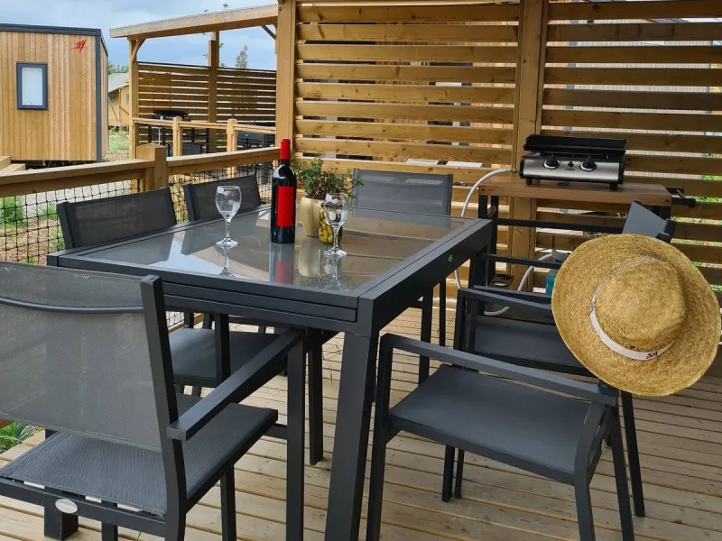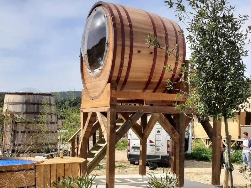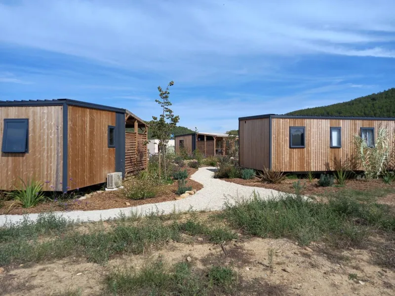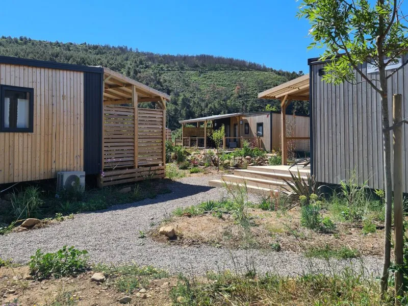 Flower Camping Olivigne is surrounded by olive trees and vineyards in a beautiful natural setting. Just a few steps from the beautiful Cathar bastion of Bize-Minervois and the resurgence of the Cesse river for swimming in fresh pure water.Our campsite has brand-new, ecological and premium amenities with spacious showers and toilets, baby facilities, organic-mineral swimming pool with waterfall, wading pool, petanque court, multipurpose sports ground and playground. A fully serviced area for emptying grey and black waste water. A lovely picnic area surrounded by olive trees is available for hikers, cycling tourists and Way of St. James pilgrims. The campsite is located in the valley of the Minervois plain known for its famous wine and near the Canal du Midi. It’s a quiet, relaxing site in a natural showcase with a superb view over the Vallée de la Cesse, near a typical village with rich history.