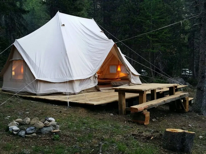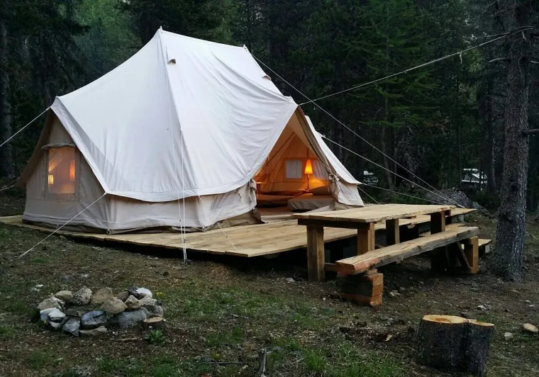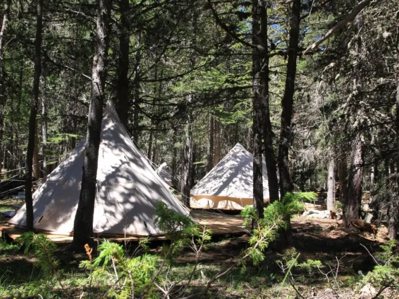 We are located at the foot of the Izoard pass with direct access to the most beautiful hikes, mountain bike rides or major road passes ....We offer you a stay in a magical base camp under the pines with several options: equipped tents for 2 or 4 people, access or not to a shared catering area in free management (gas stove, fridges, dishes, wood stove...), large outdoor hot tub, breakfast, beer & wine bar, rental of top-of-the-range electric mountain bikes Moustache, rental of via ferrata kit, secured room for your bikes, repair workshop....