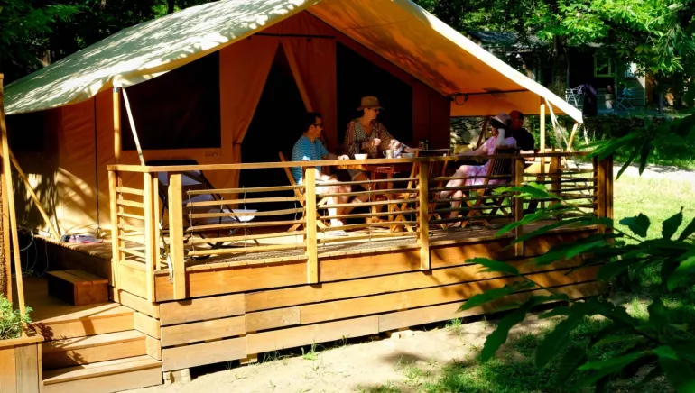 With eco-responsible values, marked Value Regional Natural Park of the Monts d'Ardèche, our campsite with 42 pitches welcomes you in the heart of a chestnut grove, 300m from the Chassezac river and its many swimming spots.