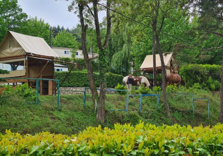 At 1.5 km from Lamastre town center, in the heart of Ardèche, and close to the "La Dolce Via" bike path, the campsite is set in a magnificent environment perfect for hiking enthusiasts or cyclists.We welcome you within 100 meters of the "Le Doux" river, classified as a first category river for fishing enthusiasts. The river is also ideal for swimming (supervised in high season).